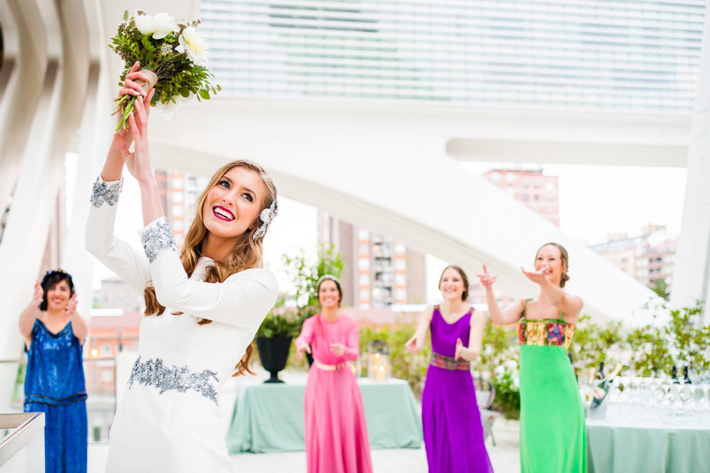 En un punto de la fiesta de bodas, se hace un llamado a todas las asistentes solteras. Luego de un baile alrededor de la novia, se colocan todas juntas, mientras esta se da la vuelta y avienta el ramo hacia ellas. La tradición dicta que quien agarre el ramo será la próxima en casarse.